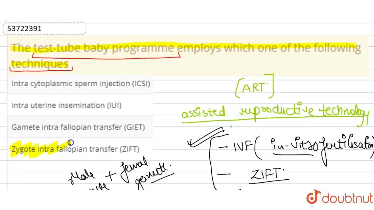 The Test Tube Baby Programme Employs Which One Of The Following Techniques